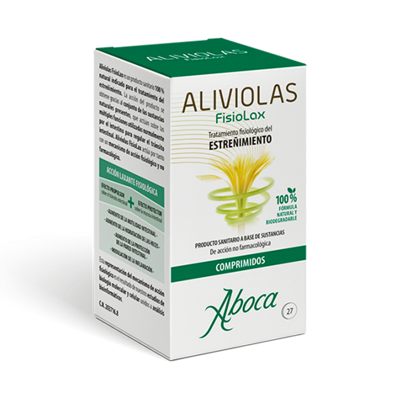 Comprimidos: Complejo Aliviolas Fisiolax (obtenido a partir de la Cassia, la Achicoria, el Hinojo, el Diente de león, la Alcaravea y el Comino) 420 mg por comprimido.