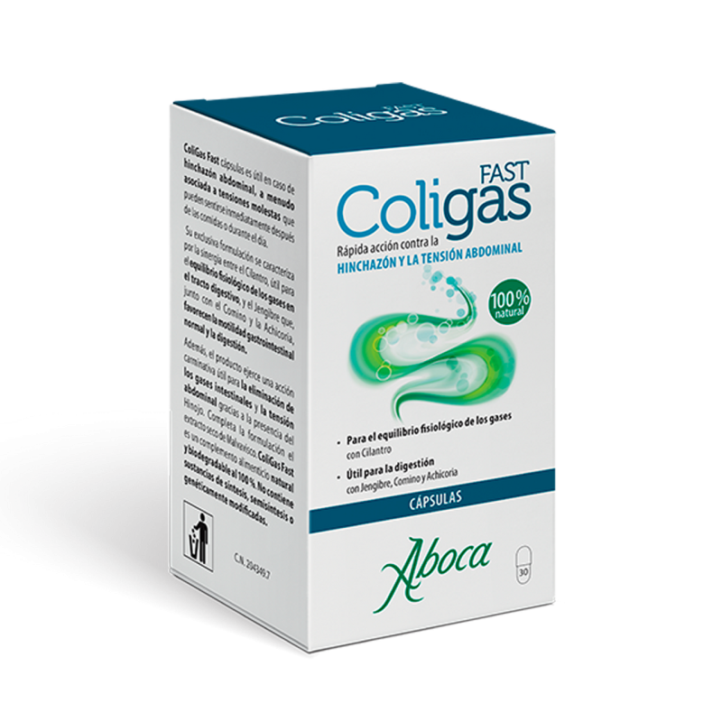 Coligas Fast es un complemento alimenticio que ayuda a combatir la hinchazón y la tensión abdominal de manera natural.