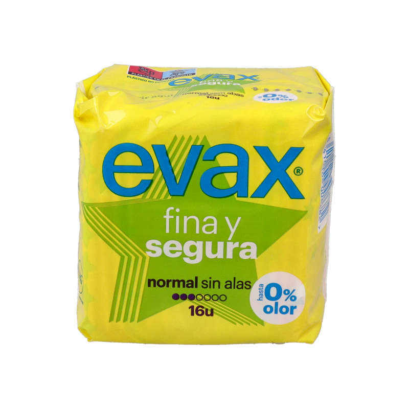 COMPRESAS HIGIENICAS FEMENINAS EVAX FINA Y SEGURA NORMAL 16 COMPRESAS