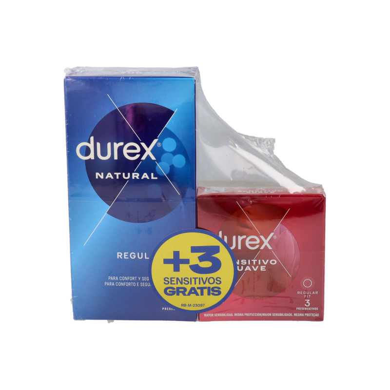 DUREX NATURAL PLUS + DUREX SENSITIVO CONFORT PRESERVATIVOS 12 + 3 PRESERVATIVOS PACK