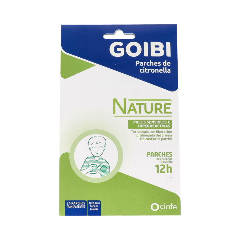 Uso externo. No ingerir ni chupar. No aplicar sobre la piel. Para uso en niños, aplicar el parche en zonas poco accesibles para ellos para evitar la ingestión. No utilizar en personas sensibles a sus componentes. Evítese el contacto con ojos y mucosas. En caso de contacto con los ojos lávense inmediata y abundantemente con agua. Si tras la aplicación del producto nota irritación de la piel o de los ojos o si empieza a toser, interrumpa la aplicación inmediatamente. Si usted padece enfermedades respiratorias incluido asma pida consejo médico antes de emplear Goibi Parche. Si está embarazada o en periodo de lactancia, pregunte a su médico antes de emplear Goibi Parche. Manténgase fuera del alcance y de la vista de los niños. Mantener alejado de los alimentos y bebidas. En caso de ingestión, acuda inmediatamente al médico y muéstrele la etiqueta o el envase. En caso de intoxicación o de ingestión accidental, llamar al Servicio Médico de Información Toxicológica, Telf.: 91 562 04 20.