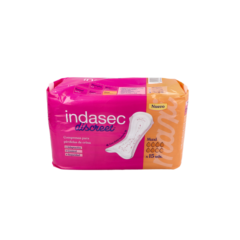 COMPRESA PERDIDAS LEVES INDASEC DISCREET MAXI 15 UNIDADES