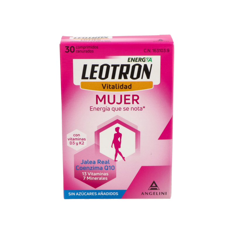 Carbonato de calcio; sales cálcicas del ácido ortofosfórico; ácido L-ascórbico (vitamina C); óxido de magnesio; acetato de DL-alfa-tocoferilo (vitamina E); agente de carga: celulosa microcristalina; nicotinamida (vitamina B3); fumarato ferroso; jalea real (30 mg/comp); antiaglomerante: polivinilpolipirrolidona; agente de recubrimiento: hidroxipropilmetilcelulosa; clorhidrato de piridoxina (vitamina B6); menaquinona (vitamina K2); antiaglomerantes: monoglicéridos y diglicéridos de ácidos grasos, carboximetilcelulosa sódica entrelazada, óxido de zinc; D-pantotenato cálcico (vitamina B5); antiaglomerante: estearato de magnesio; agente de recubrimiento: goma laca; cianocobalamina (vitamina B12); riboflavina (vitamina B2); acetato de retinilo (vitamina A); mononitrato de tiamina (vitamina B1); antiaglomerante: dióxido de silicio; carbonato de manganeso; colorante: dióxido de titanio; Coenzima Q10; agente de recubrimiento: celulosa microcristalina, ácidos grasos; citrato cúprico; colecalciferol (vitamina D); ácido pteroilmonoglutámico (vitamina B9); selenito de sodio; D-biotina (vitamina B8); colorante: ácido carmínico.