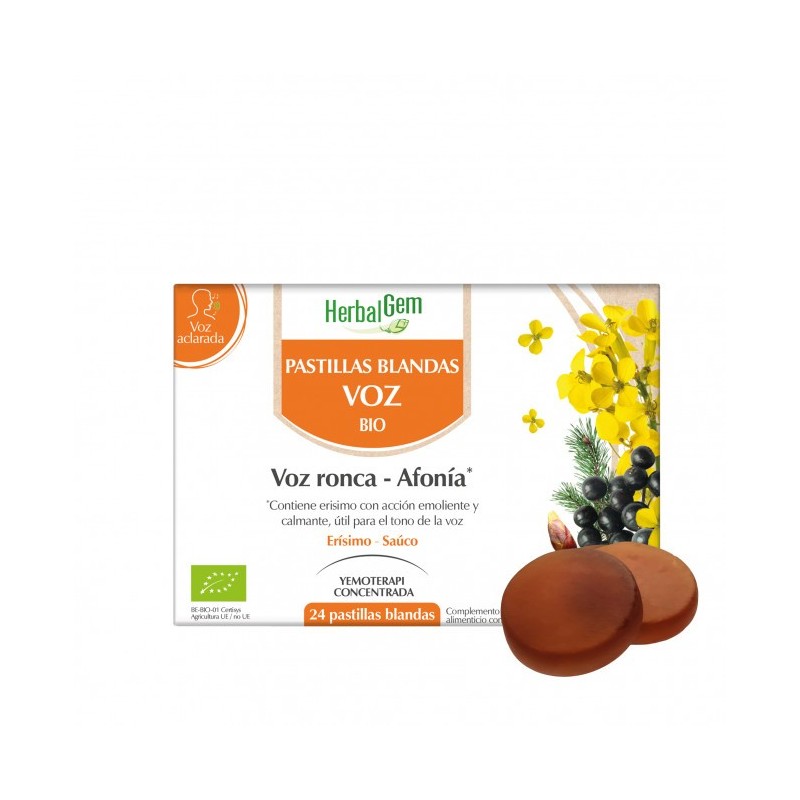 Pastillas Blandas Voz de Herbalgem, pastillas con ingredientes naturales para calmar las irritaciones de la garganta. Especialmente para cuidar de tu voz.