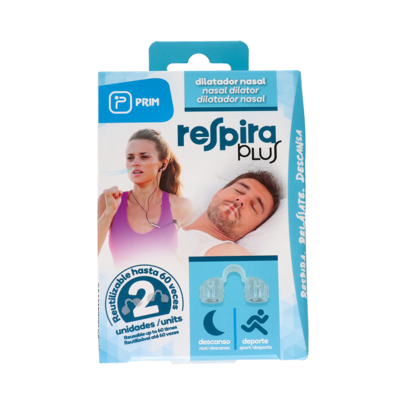 Dilatador nasal desarrollado para ayudar a mejorar la calidad del descanso nocturno y evitar ronquidos. Permite mantener los conductos nasales más abiertos, para facilitar así la entrada de aire al respirar. Es cómodo de usar y discreto, al ser transparente. También está indicado para su uso deportivo, permitiendo una respiración más controlada que puede llegar a aumentar la oxigenación hasta en un 35%.